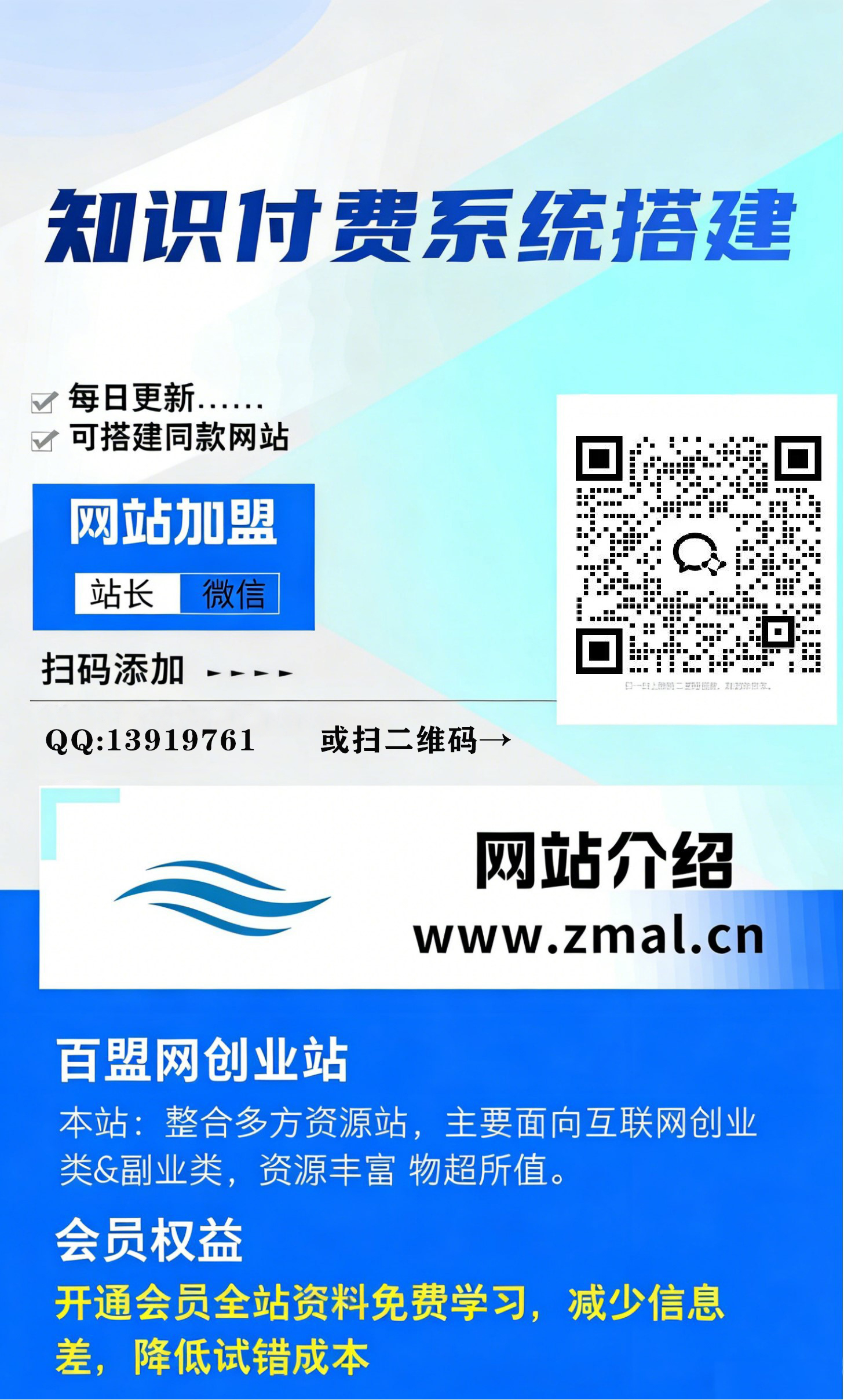 加盟百盟网,加盟搭建同款知识付费资源网站,实现长期稳定被动收入~